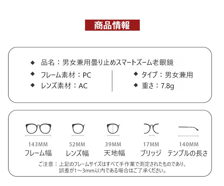 男女兼用曇り止めスマートズーム老眼鏡